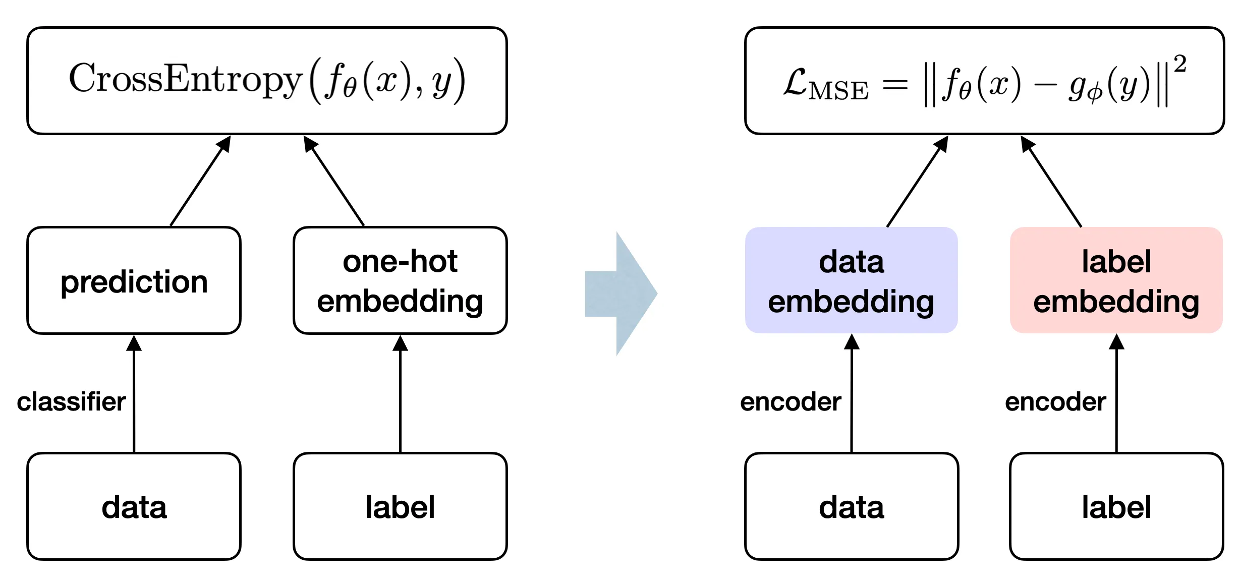 Rather than using the standard setup for classification, we work in a generative representation learning framework: both data and labels are mapped into a shared representation space, often called the embedding space in practice. In this setting, collapse can be characterized directly through representation geometry.