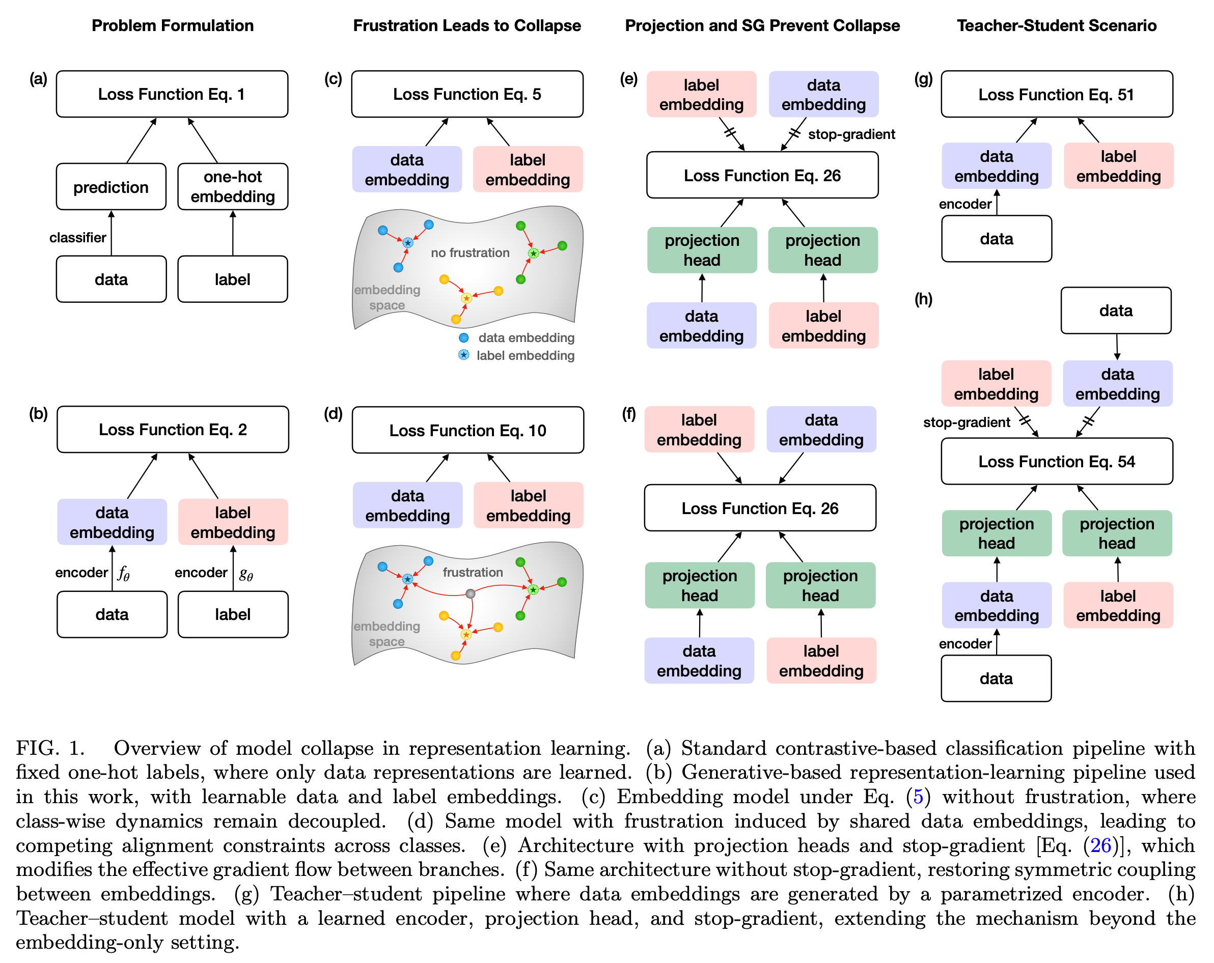 We build a minimal dynamical model directly in representation space, abstracting away the details of network architecture and parameters. We use the concept of frustration from statistical physics to describe the core mechanism behind representation collapse, and analyze how Stop-Gradient can break the symmetry and open up a non-collapsing subspace that preserves geometric separation between classes.